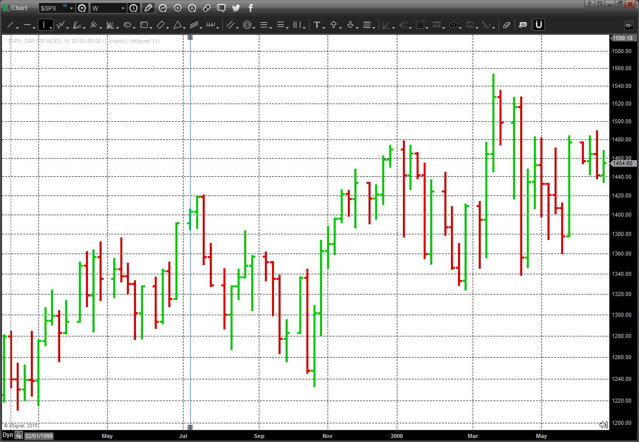 The Fed began raising rates in July 1999 as well. This time, the market pulled back -13% through October 1999. Then, it rallied through the following March. At which time, you probably remember the tech bubble burst. Still, one year out, the market was still up.
